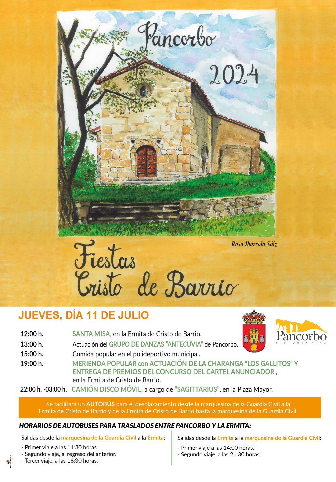 Se facilitará un AUTOBÚS para el desplazamiento desde la marquesina de la Guardia Civil a la Ermita de Cristo de Barrio y de la Ermita de Cristo de Barrio hasta la marquesina de la Guardia Civil.